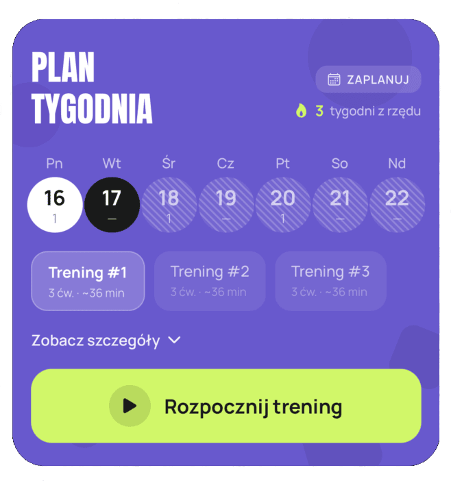 Pakiet START to 99 zł/mies w promocji. Jeden dodatkowy trening w miesiącu — i aplikacja się zwraca. Plus 30 dni gwarancji zwrotu, jeśli nie pasuje.